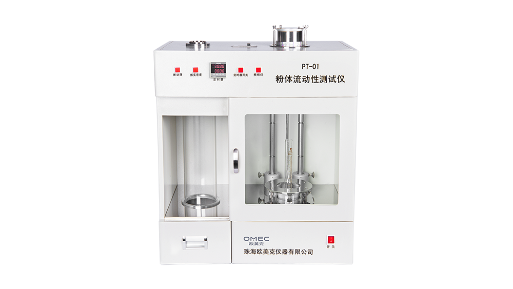 由颗粒群体间相互作⽤所表现的粉体从流动到静息的相关物理特性,直接影 响粉体材料的存储、加⼯、输送、分料或混料、制粒、包装等⼯艺过程的品质, 也与药剂的填充、压⽚等性能息息相关。在近30年的粒度测量和控制技术研 发和应⽤基础上,欧美克推出了全新的PT系列粉体流动性测试仪,为粉体⾏ 业⽤⼾提供了流动性表征的新选择。这⼀系列仪器⼴泛地采⽤不锈钢粉体接 触构件,各部件表⾯经过精细地打磨抛光处理⼯艺,集合多种测量功能。其符 合多种国内国际标准,具有简洁易⽤、测量结果的重现性良好等优点。