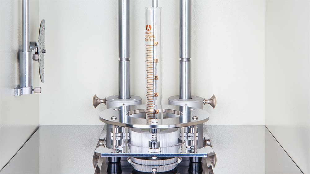 PT-01粉体流动性测试仪⼴泛采⽤304不锈钢材质,抗腐蚀性佳,器件不易⽣锈,保障了⻓时间测试的准确性。仪器内置定时器,振实密度测量振动幅度 1mm到15mm可调,振动过程中振动组件以⼩⻆度旋转保证物料均匀,可选 ⽤多种不同容积的量筒进⾏测试以应对不同的⾏业需求。此外,该仪器针对 不同的测试项⽬配有不同的出料漏⽃和量杯保证了每个测试项⽬的准确性。